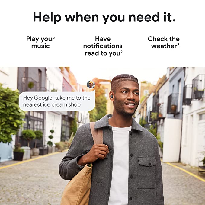 - Play music, get directions, check the weather, or have notifications read to you just by using your voice; or press and hold the earbud to talk to Google